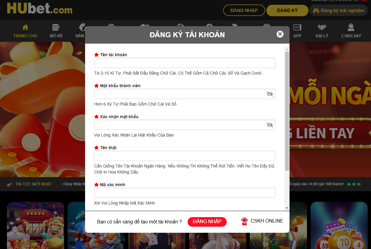 ĐĂNG KÝ HuBet1144.com DỄ DÀNG & BẢO MẬT